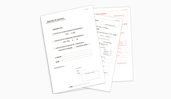 Modelli prestampati per la presentazione delle pratiche presso gli uffici della Motorizzazione.