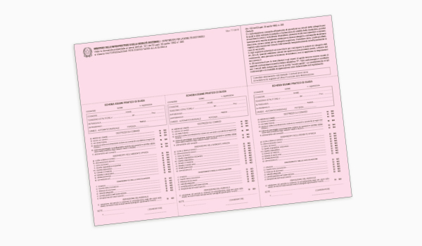 Il modello, è composto da copertina in cartoncino e fogli interni in carta ricalcante in triplice copia, come quello che veniva distribuito dalla Motorizzazione; aggiornato con 3° prova pratica di guida (Circolare prot. n. 34647 del 10/11/2021).
