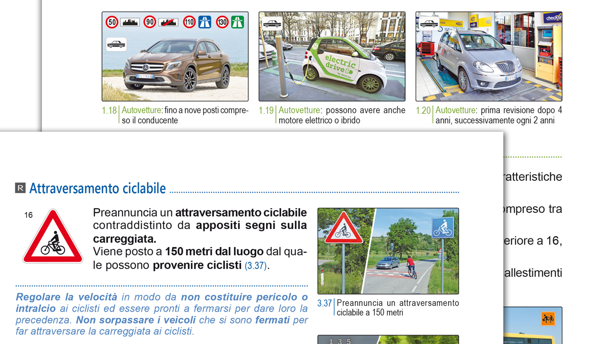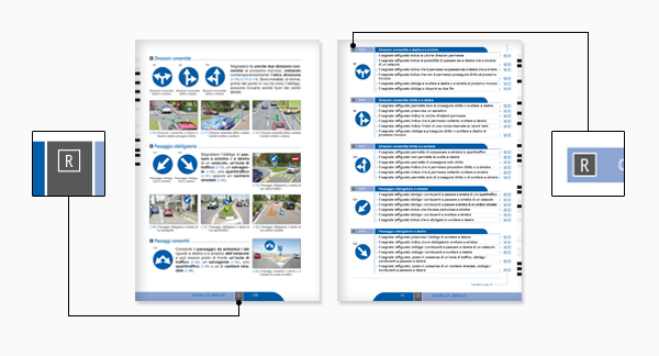 Il Manuale è concepito anche per chi deve affrontare l'esame di revisione a quiz per la patente A e B. Proprio per questo scopo le pagine di spiegazione e i quiz riguardanti questo tipo di esame sono contrassegnate, a piè di pagina e su ogni argomento o blocco di quiz, da apposite etichette riportanti la lettera R.