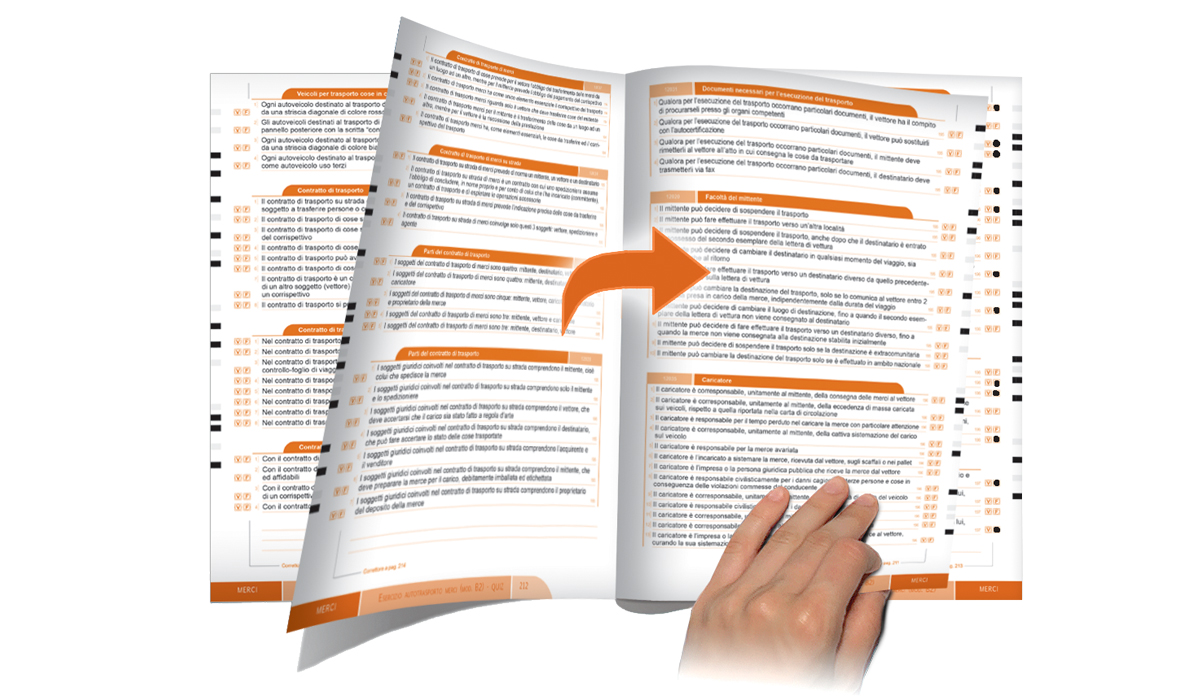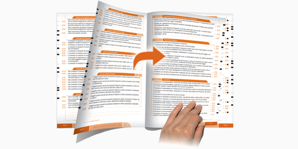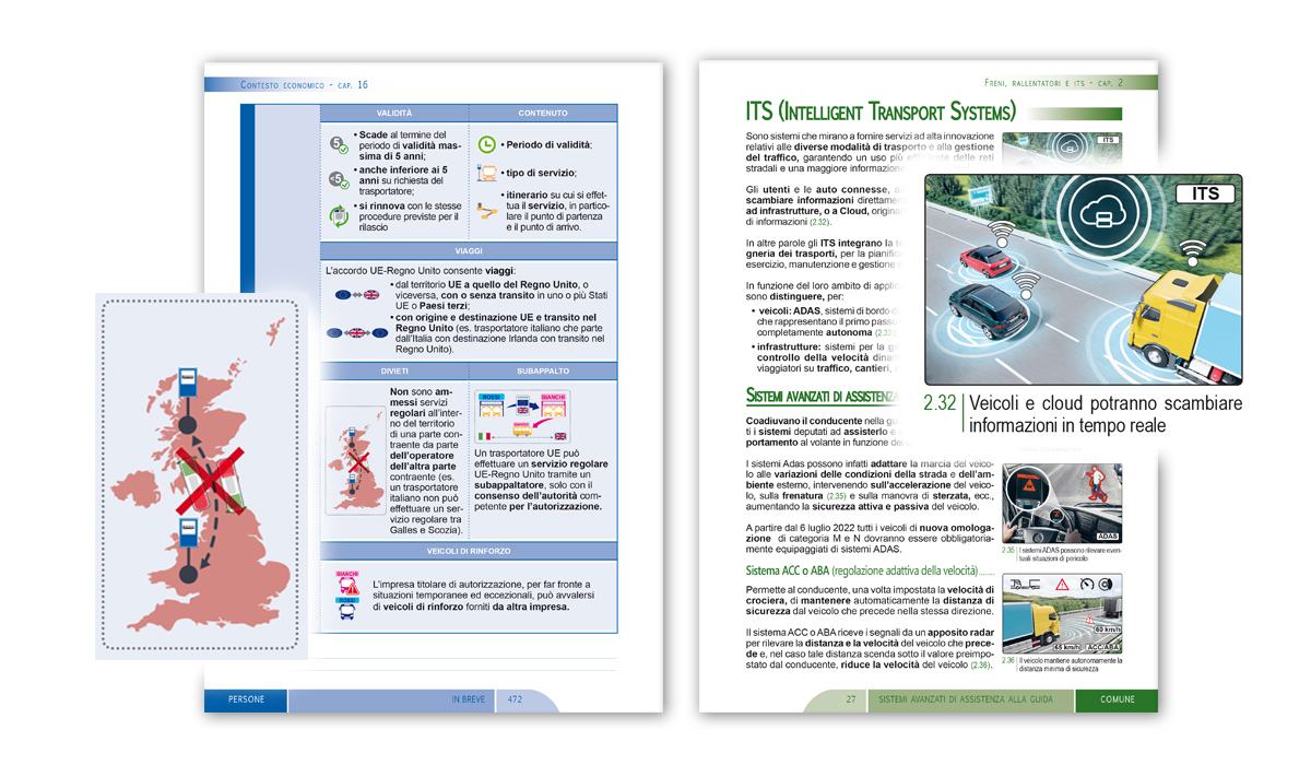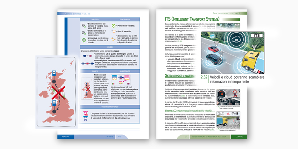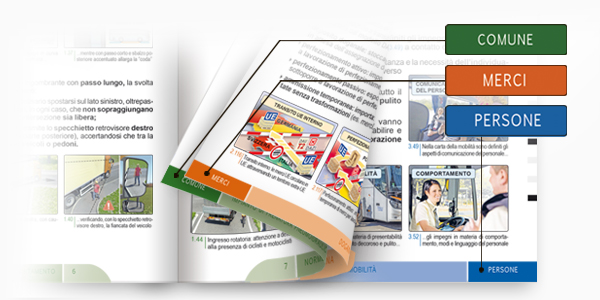 Per individuare facilmente ciascuna sezione a piè di pagina, viene indicato il nome della sezione stessa, contraddistinta da un determinato colore: verde per la parte comune, arancione per la parte specialistica merci e blu per la parte specialistica persone.
